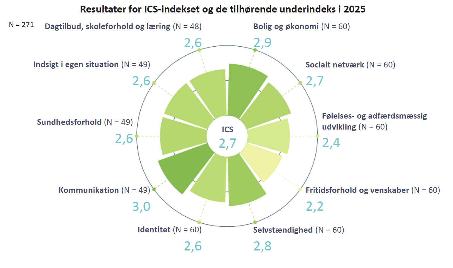 Målepunkterne er bygget op omkring tematikkerne i VUM og ICS, og spørgeguiden udarbejdet i samarbejde med Epinion. De temaer, som vi blandt andet måler på, er: